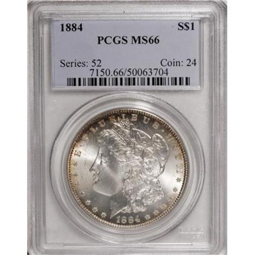 <B>1884 $1 MS66 PCGS.</B></I> A halo of russet toning at the rims of this 1884 dollar adds to its already-considerable eye appeal. A deeply lustrous and beautifully preserved example. PCGS has graded 29 finer pieces (1/08).<BR><I>From The Oxford Collection.</B></I><BR><BR><B>Coin Engraver:</B> George T. Morgan<BR><BR><b>Shipping:</b> Coins & Currency (<a target="_blank" href="http://www.heritageauctions.com/common/shipping.php">view shipping information</a>)