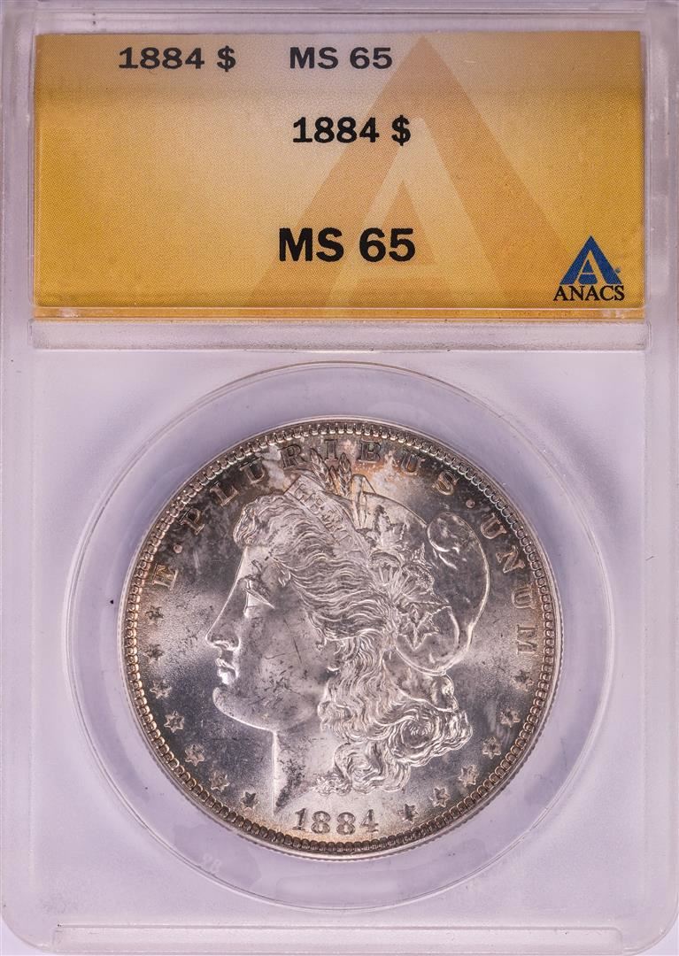 One 1884 $1 Morgan Silver Dollar Coin ANACS MS65. ANACS Certified.