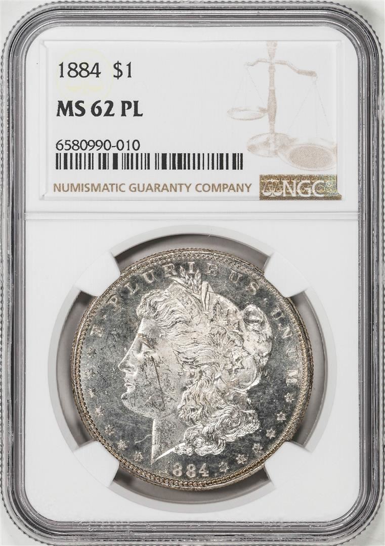 One 1884 $1 Morgan Silver Dollar Coin NGC MS62PL. NGC Certified.