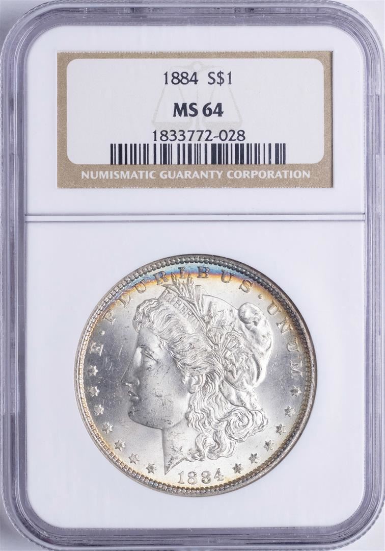 One 1884 $1 Morgan Silver Dollar Coin NGC MS64 Nice Toning. NGC Certified.