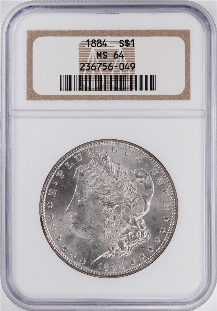 One 1884 $1 Morgan Silver Dollar Coin NGC MS64. NGC Certified.
