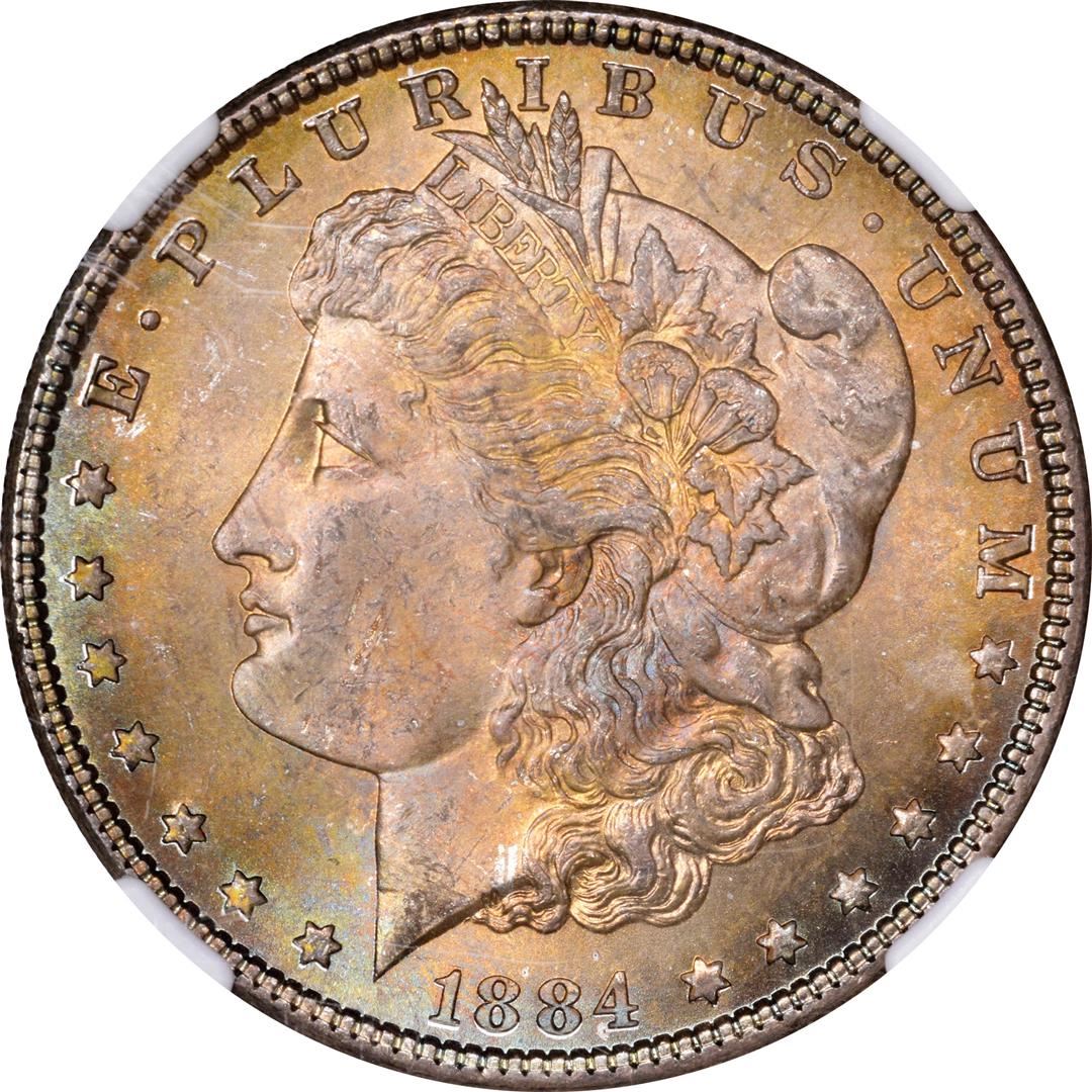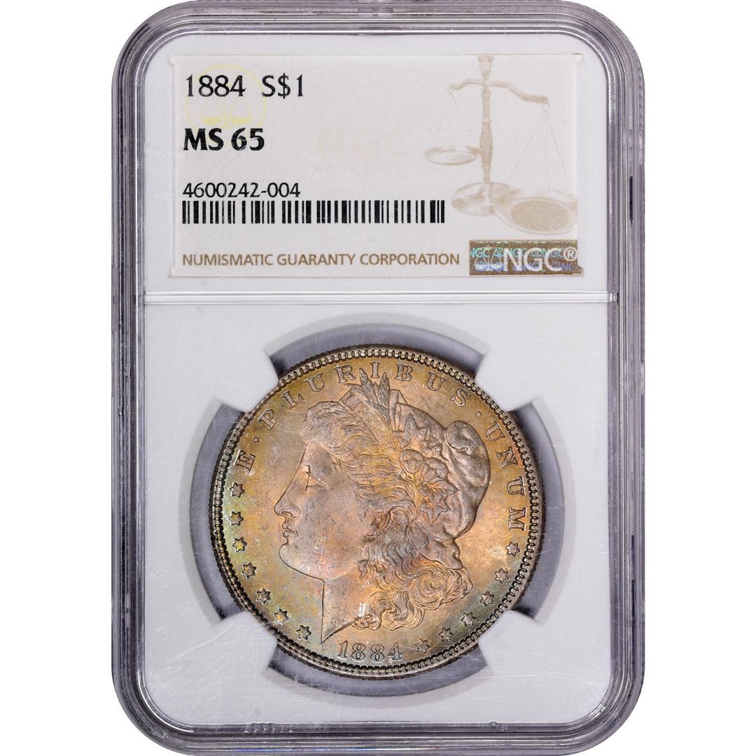 One 1884 $1 Morgan Silver Dollar Coin NGC MS65 Great Toning. NGC Certified.