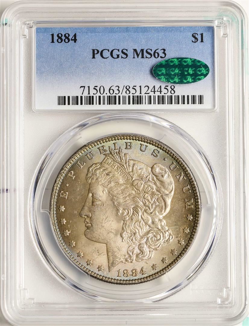 One 1884 $1 Morgan Silver Dollar Coin PCGS MS63 CAC AMAZING TONING. PCGS Graded.