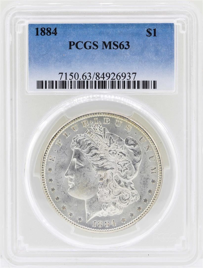 One 1884 $1 Morgan Silver Dollar Coin PCGS MS63. PCGS Graded.