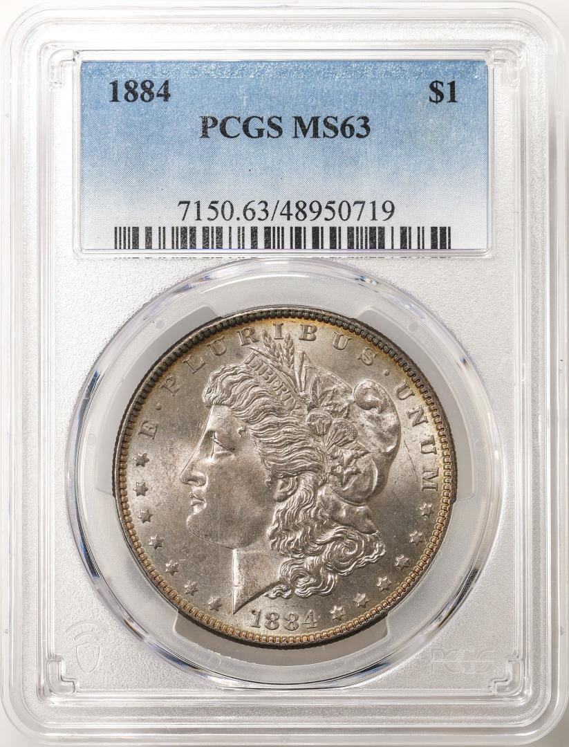 One 1884 $1 Morgan Silver Dollar Coin PCGS MS63. PCGS Graded.