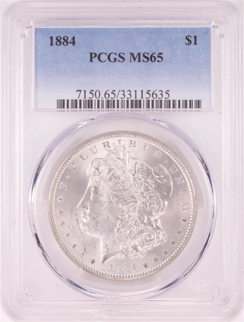 One 1884 $1 Morgan Silver Dollar Coin PCGS MS65. PCGS Graded.