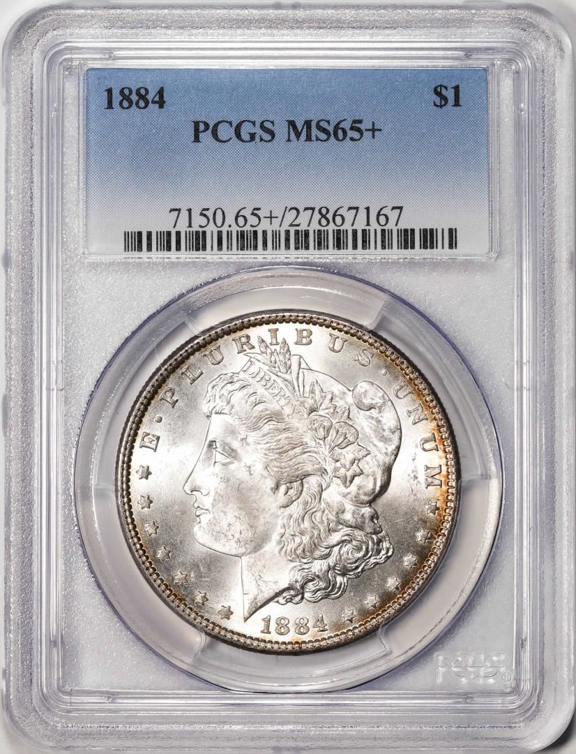One 1884 $1 Morgan Silver Dollar Coin PCGS MS65+. PCGS Graded.