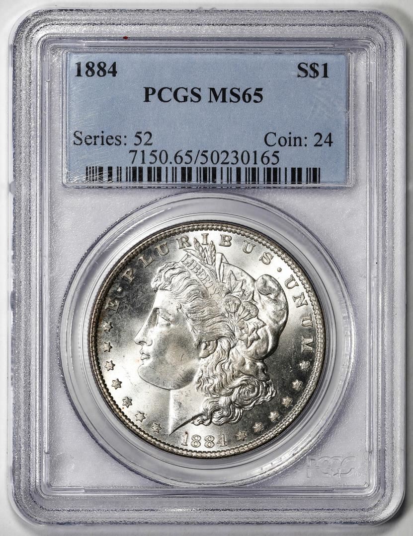 One 1884 $1 Morgan Silver Dollar Coin PCGS MS65. PCGS Graded.