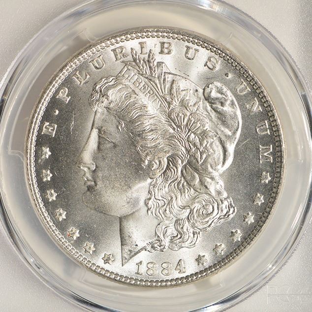 One 1884 $1 Morgan Silver Dollar Coin PCGS MS66.