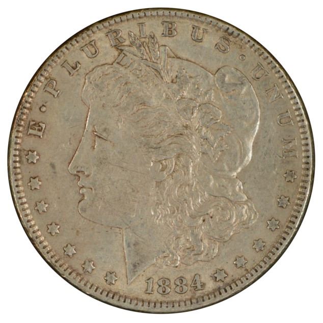 One 1884 $1 Morgan Silver Dollar Coin.