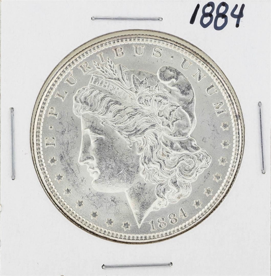 One 1884 $1 Morgan Silver Dollar Coin.