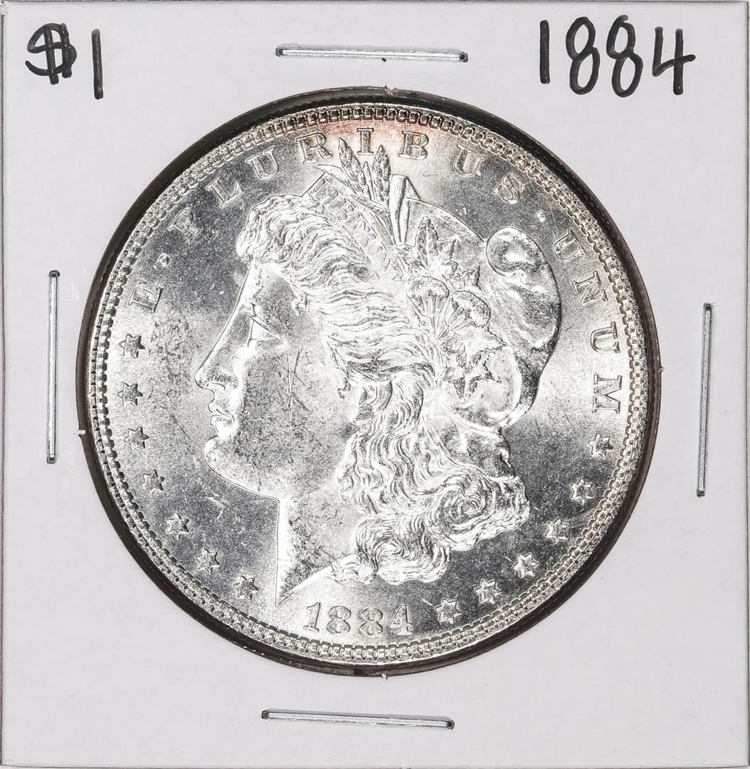 One 1884 $1 Morgan Silver Dollar Coin.