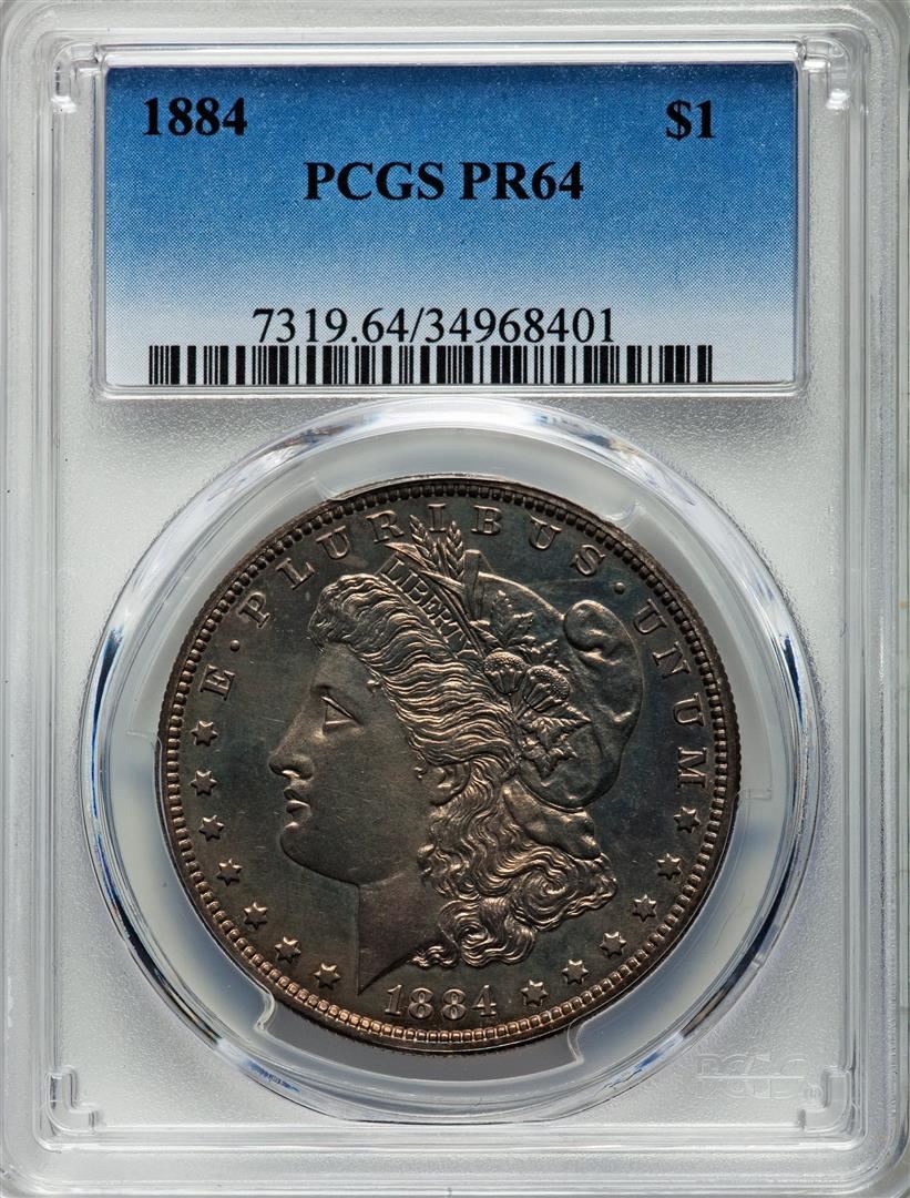 One 1884 $1 Morgan Silver Dollar Proof Coin PCGS PR64. PCGS Graded.
