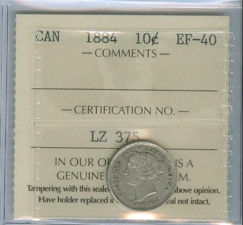 1884 10¢ ICCS EF40. A nice key date with mid range grade.
