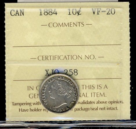 1884 10¢ ICCS VF20. Key date.