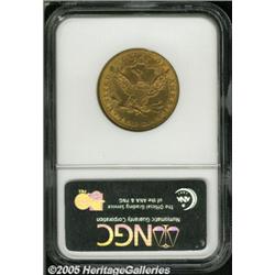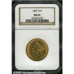 <B>1884 $10 MS62 NGC.</B></I> Two shades of peach-gold patina occupy relatively bright surfaces that show numerous miniscule contact marks. The design elements are adequately struck.