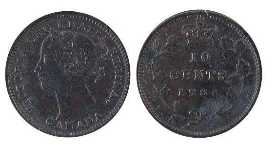 1884 10¢ Obv 4 EF45. Scarce issue for grade with intense blue tone.