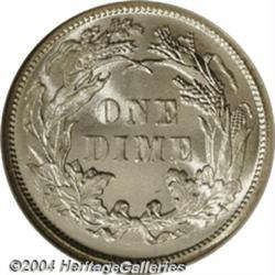 <table><tr><td><table><tr><td>1884 10C MS68 S NGC. A fully brilliant and highly lustrous Superb Gem. An attractively preserved type coin worthy of the finest collection. Only a few grains of wheat on the upper left portion of the wreath have not received a full blow from the dies. Struck from clashed dies, with the E in DIME incused below Liberty's elbow. A spindly mint-made die crack traverses the reverse border. Population: 3 in 68 S, none finer (3/04). <BR><BR><B>Important notice:</B> Heritage usually auctions material at the rate of 200-250 lots per hour. On some occasions eBay Live bid software or the Internet may not be able to keep up with the pace of the auction. We recommend placing a realistic absentee bid now as insurance to avoid disappointment. Occasionally the auctioneer may eliminate or reject an eBay Live bid, and the auctioneer may also reopen a lot after the close of the eBay live bidding (usually because we missed an audience bid), and may reject your bid even if it shows you as the winning bidder. By bidding via eBay Live, you agree that Heritage may award the lot to another bidder at its sole discretion under the circumstances described above or any other reasonable circumstances. Since eBay bids are not shown to us until we open the lot on the floor, we treat those bids just like floor bids. In most cases the floor responds before the eBay bid is presented to us, due to Internet lag time, so for consistency we have made it a policy that floor bids are always considered first over tie eBay live bids. Also please note that all Heritage lots purchased through eBay Live carry a 20% Buyer's Premium. Please make sure you read the Terms and Conditions before you bid. <BR><BR><B>IMPORTANT ANNOUNCEMENT ABOUT RESERVES:</B> Heritage now divulges all reserves on its web site 7 days before every auction. If you want to know whether the reserve on this lot has been met, and if not, what the reserve amount is, please visit this lot page on the HeritageCoin.com web site, or email: bid@HeritageGalleries.com </span></font></td></tr></table></td></tr></table>