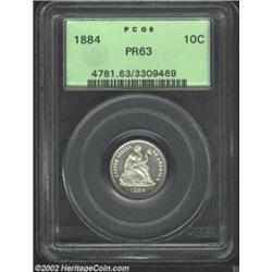 1884 10C PR63 PCGS. Although not designated as such on the insert, this piece shows sharp cameo cont