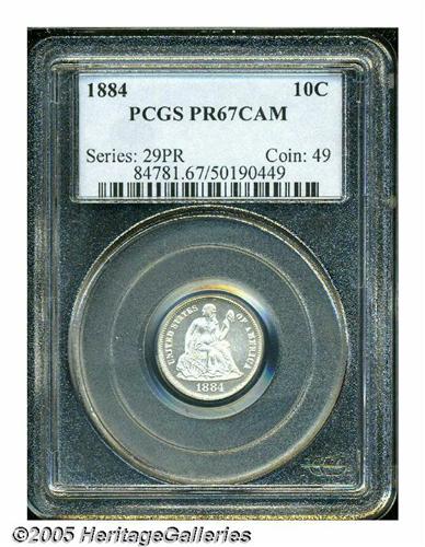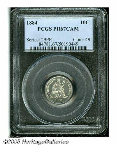 1884 10C PR67 Cameo PCGS. Sparkling, untoned mirr