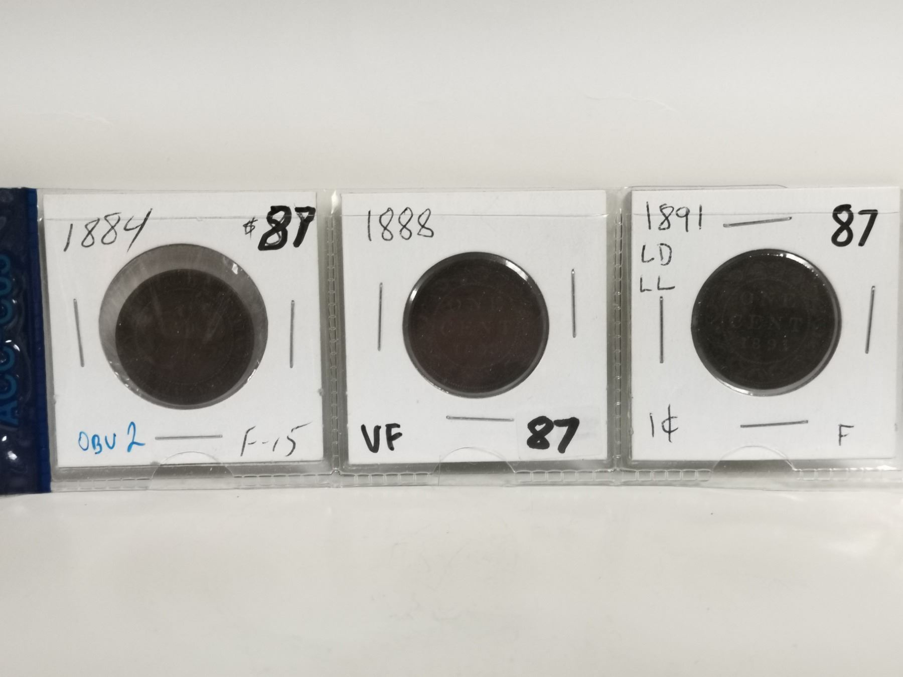 1884,1888,1891 LDLL 1¢ coins , nice grades
