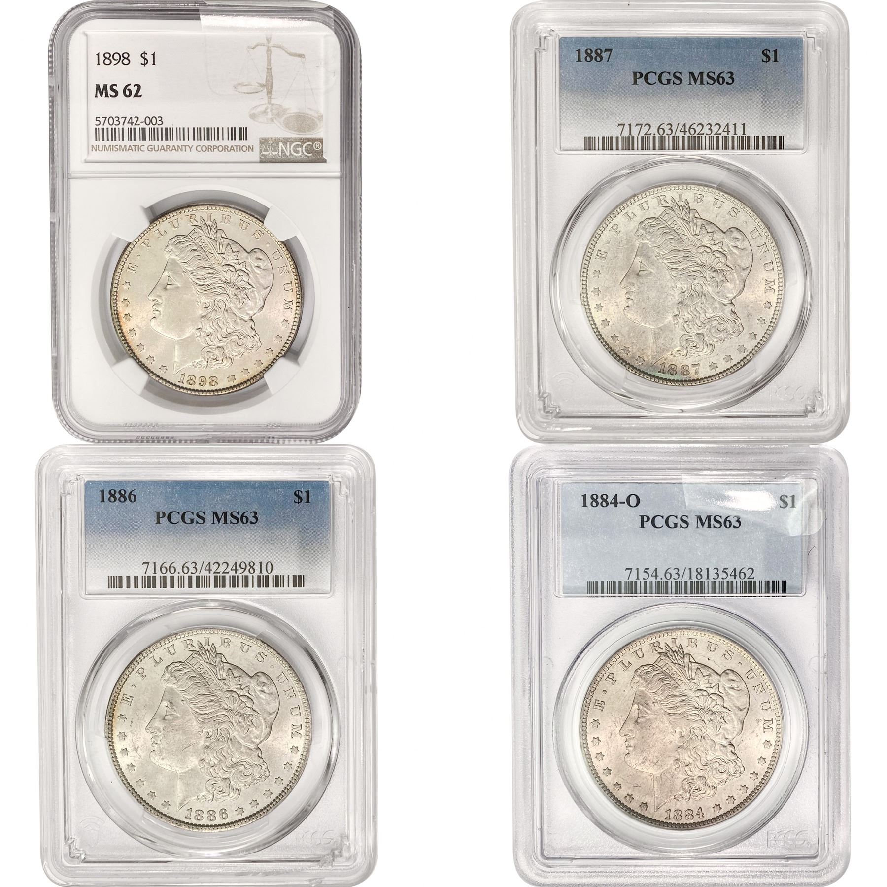 1884-1898 [4] Morgan Silver Dollar PCGS/NGC MS62-63