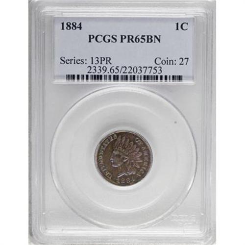 <B>1884 1C PR65 Brown PCGS.</B></I> PCGS Population (27/13). NGC Census: (34/34). Mintage: 3,942. Numismedia Wsl. Price for NGC/PCGS coin in PR65: $260. (#2339)<BR><BR><B>Coin Engraver:</B> James B. Longacre<BR><BR><b>Shipping:</b> Coins & Currency (<a target="_blank" href="http://www.heritageauctions.com/common/shipping.php">view shipping information</a>\)