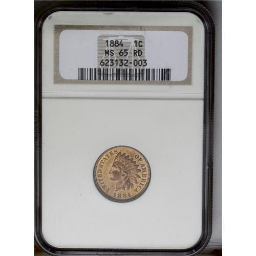 <B>1884<1C> MS65 Red NGC.</B></I> Bright coppery-gold surfaces reveal nice luster. A miniscule mark is found in the upper left obverse field, and the design elements are adequately struck, though the upper middle diamond is a tad soft.