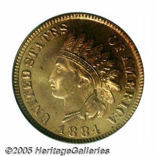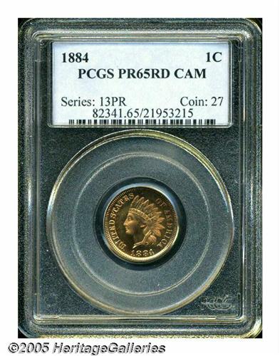 <B>1884<1C> PR65 Cameo PCGS.</B></I> While a common date in proof format, it is uncommon with cameo contrast as seen on this coin. The fields are bright and reflective with lovely red color over each side and a touch of cherry-red on the reverse. Population: 3 in 65, 4 finer (4/05).