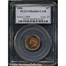 <B>1884<1C> PR66 Cameo PCGS.</B></I> Bright, reflective surfaces exhibit beautiful red, pink, and golden colors on each side. All details are razor-sharp and well defined. A premium specimen that is carbon-free, and mark-free as well. Population: 3 in 66 Cameo, 1 finer (9/04). <BR><BR><B>Important notice:</B> Heritage usually auctions material at the rate of 200-250 lots per hour. On some occasions eBay Live bid software or the Internet may not be able to keep up with the pace of the auction. We recommend placing a realistic absentee bid now as insurance to avoid disappointment. Occasionally the auctioneer may eliminate or reject an eBay Live bid, and the auctioneer may also reopen a lot after the close of the eBay live bidding (usually because we missed an audience bid), and may reject your bid even if it shows you as the winning bidder. By bidding via eBay Live, you agree that Heritage may award the lot to another bidder at its sole discretion under the circumstances described above or any other reasonable circumstances. Since eBay bids are not shown to us until we open the lot on the floor, we treat those bids just like floor bids. In most cases the floor responds before the eBay bid is presented to us, due to Internet lag time, so for consistency we have made it a policy that floor bids are always considered first over tie eBay live bids. Also please note that all Heritage lots purchased through eBay Live carry a 20% Buyer's Premium. Please make sure you read the Terms and Conditions before you bid.