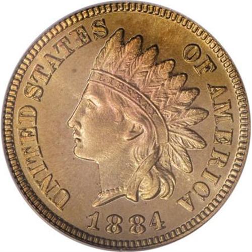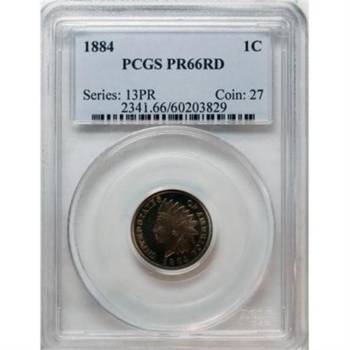<B>1884 1C PR66 Red PCGS.</B></I> This radiant, deep, crimson-gold Premium Gem has an exquisite strike and is seemingly free from contact. No mentionable carbon is seen on either side. The lower loops of the 8s in the date are lightly repunched. Great technical quality and aesthetic appeal. Population: 31 in 66, 10 finer (11/07).<BR><BR><B>Coin Engraver:</B> James B. Longacre<BR><BR><b>Shipping:</b> Coins & Currency (<a target="_blank" href="http://www.heritageauctions.com/common/shipping.php">view shipping information</a>)