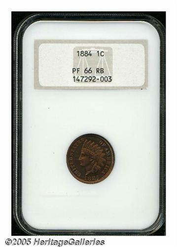 <B>1884<1C> PR66 Red and Brown NGC.</B></I> A needle-sharp Premium Gem that displays bright medium orange patina with a splash or two of violet on the obverse and a couple of yellow-orange accents on the reverse. The surfaces are virtually pristine, showing no significant contact marks or unsightly spots. Population: 45 in 66, 8 finer (3/05).