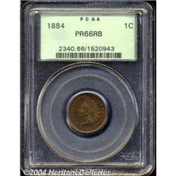 <B>1884<1C> PR66 Red and Brown PCGS.</B></I> Exceptionally well struck, with varying shades of golden-brown, light green, and crimson toning, and remarkably well preserved surfaces. Population: 37 in 66, 15 finer (3/04). <BR><BR><B>Important notice:</B> Heritage usually auctions material at the rate of 200-250 lots per hour. On some occasions eBay Live bid software or the Internet may not be able to keep up with the pace of the auction. We recommend placing a realistic absentee bid now as insurance to avoid disappointment. Occasionally the auctioneer may eliminate or reject an eBay Live bid, and the auctioneer may also reopen a lot after the close of the eBay live bidding (usually because we missed an audience bid), and may reject your bid even if it shows you as the winning bidder. By bidding via eBay Live, you agree that Heritage may award the lot to another bidder at its sole discretion under the circumstances described above or any other reasonable circumstances. Since eBay bids are not shown to us until we open the lot on the floor, we treat those bids just like floor bids. In most cases the floor responds before the eBay bid is presented to us, due to Internet lag time, so for consistency we have made it a policy that floor bids are always considered first over tie eBay live bids. Also please note that all Heritage lots purchased through eBay Live carry a 20% Buyer's Premium. Please make sure you read the Terms and Conditions before you bid. </span></font></tr></table></td></tr></table>