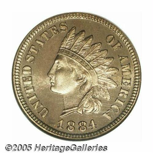<B>1884<1C> PR67 Red NGC.</B></I> Even though 3,942 proofs were struck of the 1884 cent, very few have survived with full red surfaces and pristine, sparkling surfaces such as this coin. Deeply mirrored, the surfaces are bright orange-red with no mentionable defects on either side. An outstanding example of this underappreciated date in the proof series. Population: 4 in 67, 0 finer (4/05).<BR><I>From The Western Hills Collection.</B></I>