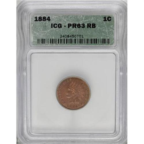 <B>1884 1C PR63 Red and Brown ICG.</B></I> NGC Census: (19/215). PCGS Population (33/306). Mintage: 3,942. Numismedia Wsl. Price for NGC/PCGS coin in PR63: $183. (#2340)<BR><BR><B>Coin Engraver:</B> James B. Longacre<BR><BR><b>Shipping:</b> Coins & Currency (<a target="_blank" href="http://www.heritageauctions.com/common/shipping.php">view shipping information</a>)