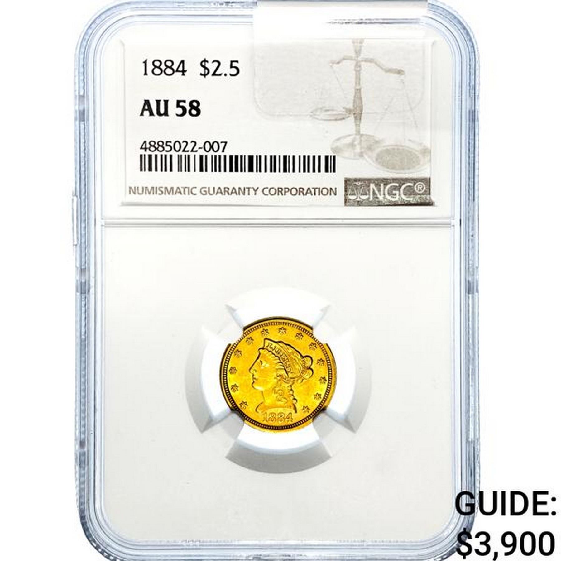 1884 $2.50 Gold Quarter Eagle NGC AU58