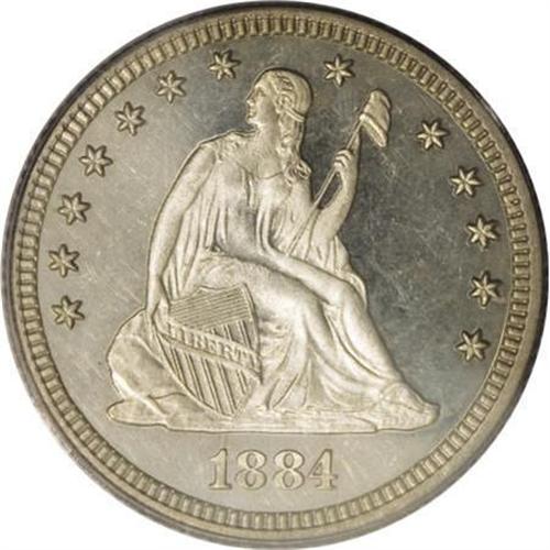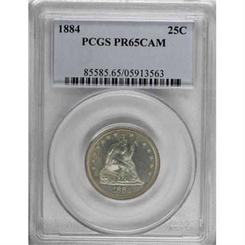 <B>1884 25C PR65 Cameo PCGS.</B></I> A remarkable cameo proof with hints of champagne toning over deeply mirrored fields. This is a low mintage date, with both proofs and business strikes highly desired by collectors. Population: 8 in 65, 14 finer (8/07).<BR><BR><b>Shipping:</b> Coins & Currency (<a target="_blank" href="http://www.heritageauctions.com/common/shipping.php">view shipping information</a>)