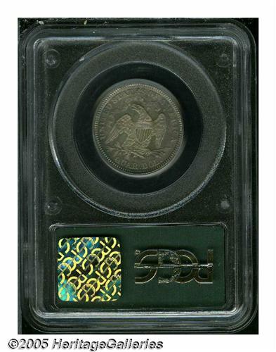 <B>1884<25C> PR65 PCGS.</B></I> Electric-blue, rose-red, and olive colors dominate this needle-sharp and carefully preserved specimen. Certified in an old green label holder. A scant 875 pieces were struck, in addition to a token business strike production of 8,000 pieces. Population: 35 in 65, 25 finer (5/05).