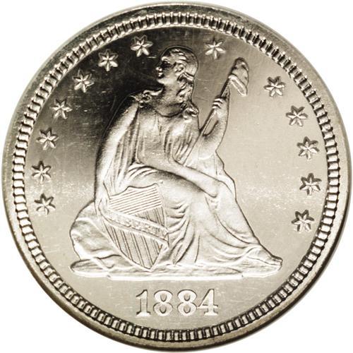 1884 25C PR68 Cameo NGC. Only 8,875 quarters were stru 1884[25C] PR68 Cameo NGC.