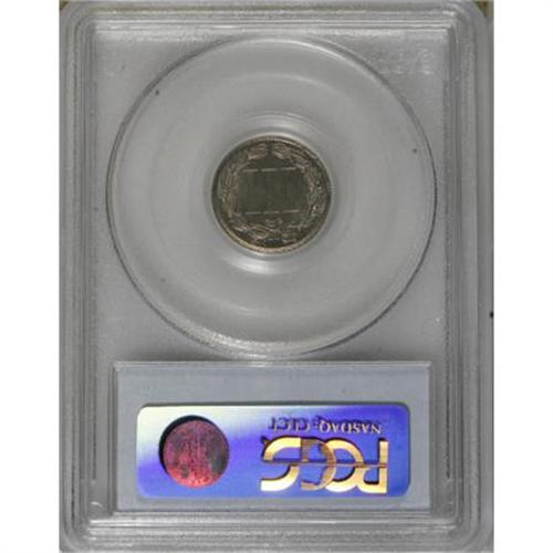 <B>1884 3CN PR65 PCGS.</B></I> Delicate gold, pink, and blue toning graces the moderate mirrors of this elegant Gem. Well struck for this proof issue and carefully preserved. One of fewer than 4,000 specimens struck.<BR><BR><B>Coin Engraver:</B> James B. Longacre<BR><BR><b>Shipping:</b> Coins & Currency (<a target="_blank" href="http://www.heritageauctions.com/common/shipping.php">view shipping information</a>)
