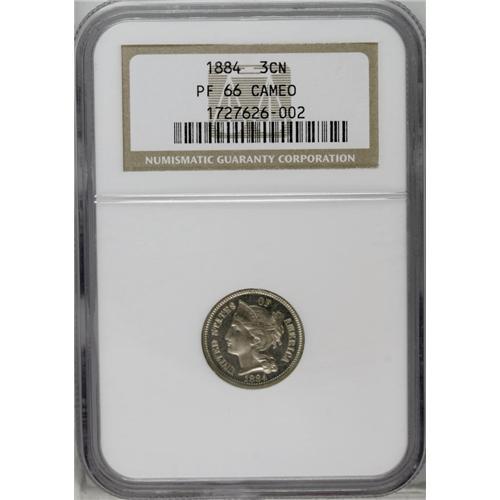 1884 3CN PR66 Cameo NGC. Stunning field to motif contr 1884[3CN] PR66 Cameo NGC.