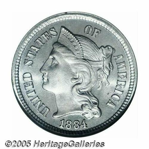 <B>1884<3CN> PR66 NGC.</B></I> While only modestly reflective, everything else about this later date proof is strictly first rate. The strike is needle sharp and delicate pastel highlights are especially attractive.<BR><I>From The Western Hills Collection.</B></I>