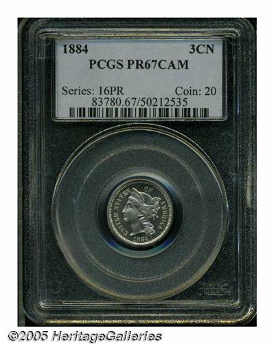 1884 3CN PR67 Cameo PCGS. Pristine, completely un