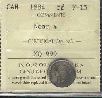 1884 5¢ ICCS F-15, NEAR 4.