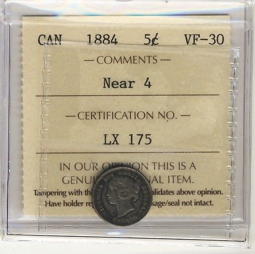 1884 5¢ ICCS VF30. Key date.