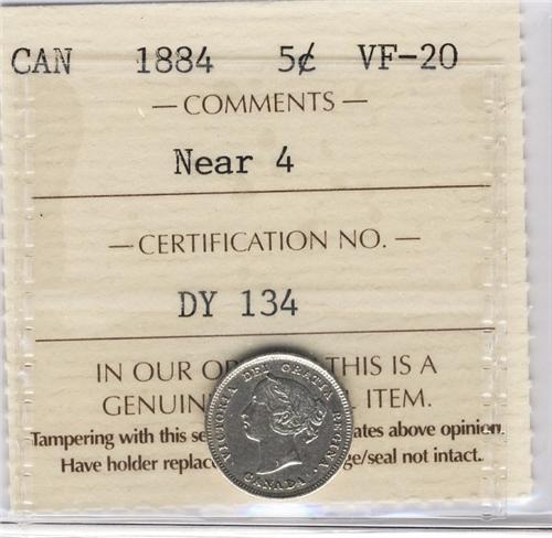 1884 5¢ Near 4. A key date example in ICCS VF20. Bright coin with nice strong strike