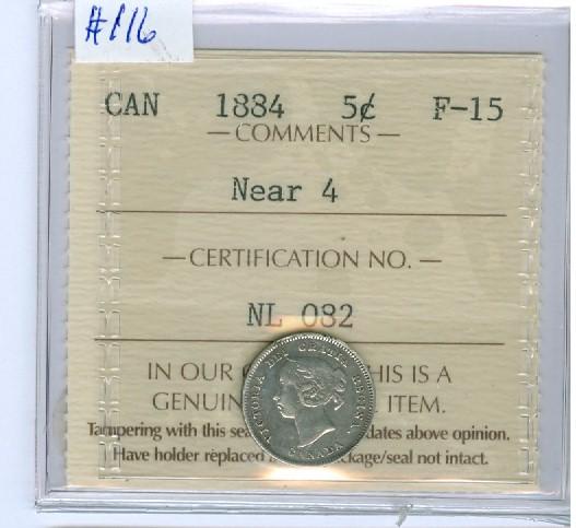 1884 5¢ Near 4 ICCS F15. Greyish look, strong strike.