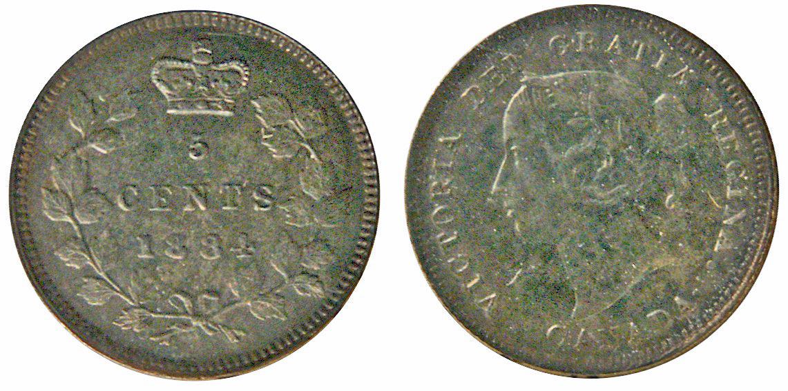 1884 5¢ Near 4 ICCS MS62. Superb and attractive irridescent toning with full underlying lustre. Excessively scarce and desirable. Only 3 examples finer.