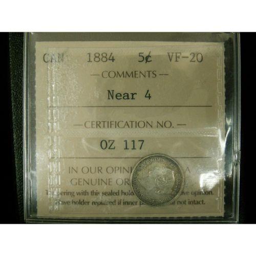 1884 5¢ Near 4 ICCS VF20. Mid grade key date example.