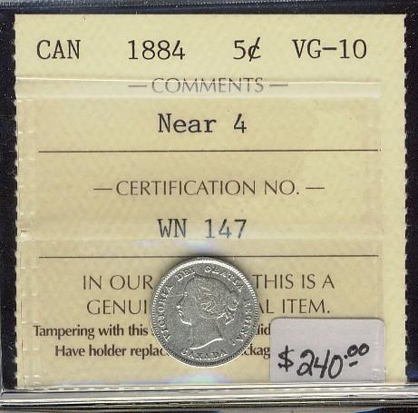 1884 5¢ Near 4 ICCS VG10